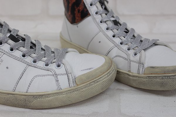 1S7834/サンローランパリ SL/37M シグネチャーコートクラシックサーフ スペイン製 レオパード ユーズド加工ミッドカットスニーカー