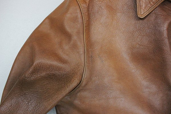 ・右肩、第二ボタン付近と右袖に黒ずみ