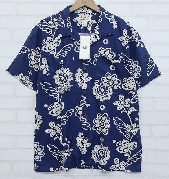 5T3641/未使用品 RRL プリントリネンブレンド キャンプシャツ ハワイアン アロハシャツ