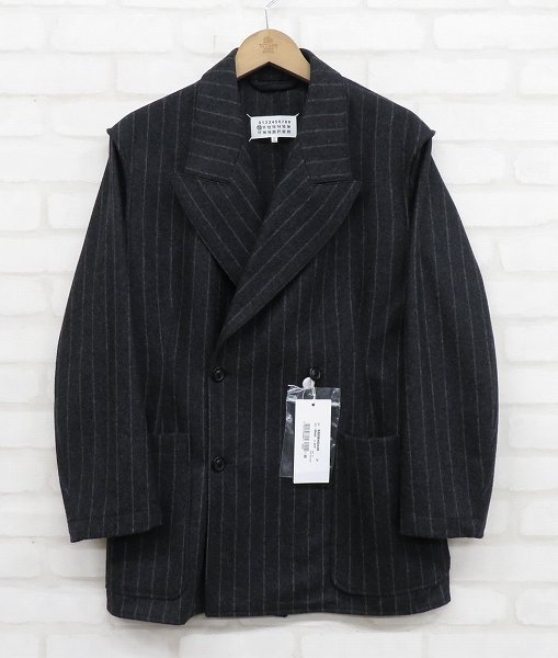 KI2J8016/未使用品 メゾンマルジェラ10 20AW ウールフランネルインサイドアウトストライプダブルブレストジャケット イタリア製 S50BN0446