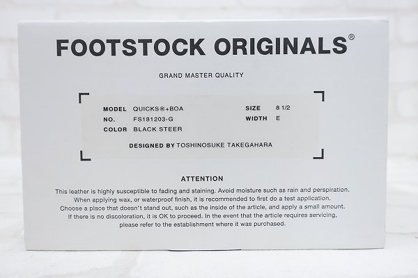 KH2S1721/未使用品 FOOTSTOCK ORIGINALS QUICKS+BOA フットストックオリジナルズ クイックスボア シューズ
