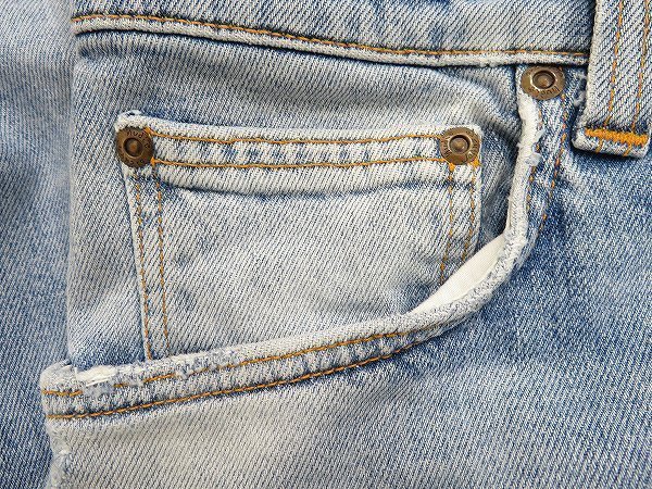フロントポケットの縁と両裾に若干のほつれはございますが、