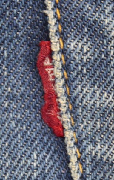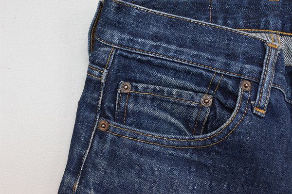 バックポケット裏のステッチはチェーン、アウトシームは脇割りです。