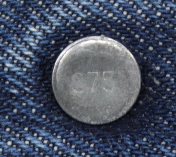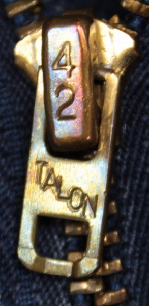 赤タブは両面BIGE、ジッパーはタロン、トップボタン裏の刻印は375、