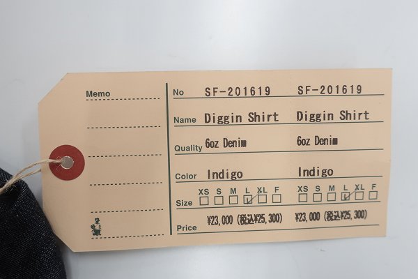 JK6T1133/未使用品 ササフラス デニムディギンシャツ SASSAFRAS Diggin Shirt 6oz Denim SF-201619